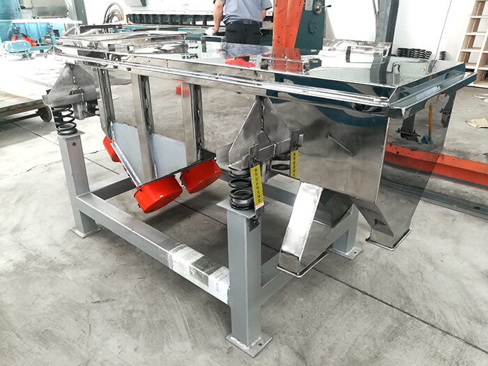 直線振動篩又稱直線篩,是利用振動激振作為振動源,使篩面物料做直線運(yùn)動。物料從給料機(jī)均勻進(jìn)入篩機(jī)進(jìn)料口,通過多層篩網(wǎng)產(chǎn)生數(shù)種規(guī)格的篩上物、篩下物,然后從不同出口排出。