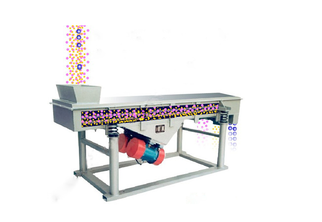 物料從給料機(jī)均勻地進(jìn)入篩分機(jī)的進(jìn)料口,在振動(dòng)電機(jī)的激振下,向出料口方向邊跳動(dòng)邊篩分,通過多層篩網(wǎng)篩分出數(shù)種產(chǎn)品和不合格的篩上、篩下物,分別從各自的出口排出,流入料倉或盛料筒.