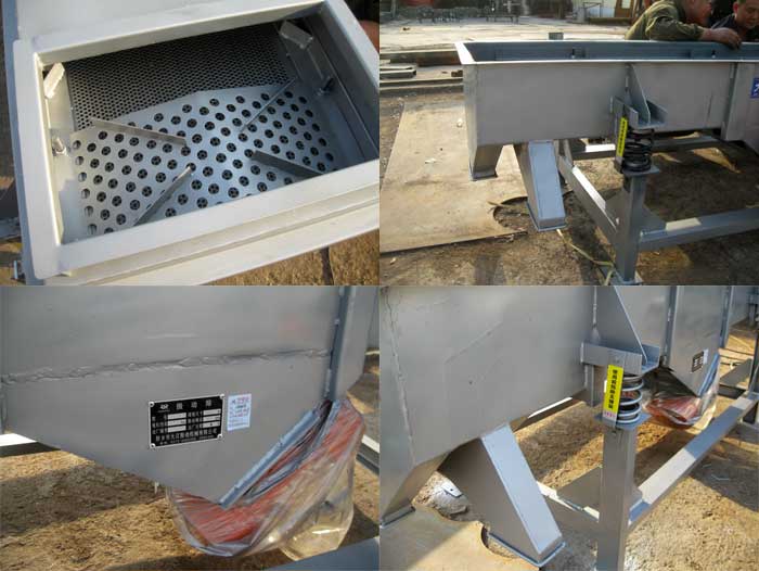 直線振動篩是種比較常見的振動篩分設(shè)備,利用振動電機(jī)激振作為振動動力來源,使物料在篩網(wǎng)上被拋起,同時向前作直線運(yùn)動,物料從給料機(jī)均勻地進(jìn)入篩分機(jī)的進(jìn)料口,通過多層篩網(wǎng)產(chǎn)生數(shù)種規(guī)格的篩上物、篩下物、分別從各自的出口排出。