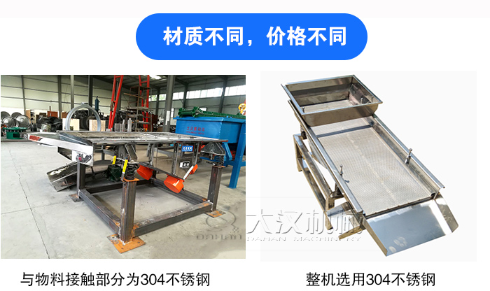 降溫直線篩直線振動(dòng)篩材質(zhì)主要有碳鋼與不銹鋼兩種:①與物料接觸部分為304不銹鋼材質(zhì),其他部分選用碳鋼材質(zhì);②整機(jī)選用304不銹鋼材質(zhì)。不銹鋼材質(zhì)的采購(gòu)成本比碳鋼材質(zhì)高,所以相對(duì)于第種方案,第二種會(huì)更加貴些。