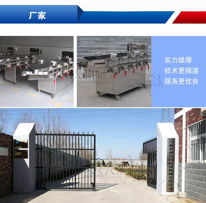 公司是一家綜合型的食品直線振動篩廠家,占地面積有10000平方米,整體實力著實雄厚,產(chǎn)品銷往海外80多個多家和地區(qū)。