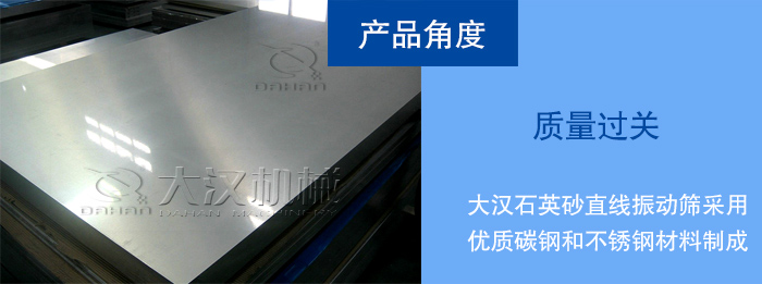 大漢石英砂直線振動篩采用優(yōu)質(zhì)碳鋼和不銹鋼材料制成,所有產(chǎn)品都是通過ISO國際質(zhì)量體系認(rèn)證和歐盟CE認(rèn)證,產(chǎn)品質(zhì)量過關(guān),設(shè)備使用壽命更長。