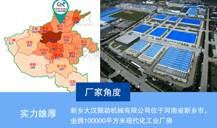 新鄉(xiāng)大漢振動機(jī)械有限公司位于河南省新鄉(xiāng)市,坐擁100000平方米現(xiàn)代化工業(yè)廠房,各種焊接設(shè)備能夠達(dá)到300余臺,而且,公司技術(shù)人員有上百名,廠家實(shí)力頗為雄厚。