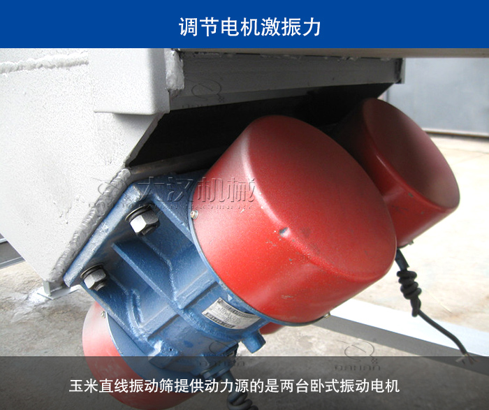 玉米直線振動篩提供動力源的是兩臺臥式振動電機,在設(shè)備出廠時電機的激振力是根據(jù)用戶提供數(shù)據(jù)調(diào)節(jié)好的,在實際使用過程中如出想提高產(chǎn)量也可通過調(diào)節(jié)兩臺電機偏心重錘的方式增加激振力實現(xiàn)提高產(chǎn)量。這里要注意的時在調(diào)節(jié)激振力前請先咨詢您的供應(yīng)商再進行合理調(diào)節(jié)。