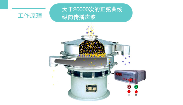 超聲振動波是一種大于20000赫茲的振動波,在超聲波振動篩中,我們一般使用在30000-40000赫茲之間的頻段。其振動特點為:使網(wǎng)絲在很小的振幅下,產(chǎn)生一個穿透能力很強、大于20000次的正弦曲線縱向傳播聲波,彈開粘附于篩網(wǎng)的物料,