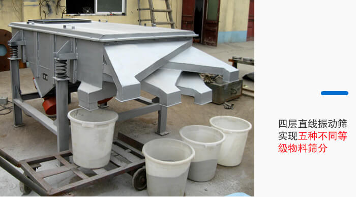 該機為DZSF-1030-4P直線振動篩,寬1000mm,長2500mm,整機為碳鋼材質四層五出口,用于石粉的篩分分級,篩分精度高、處理量大。